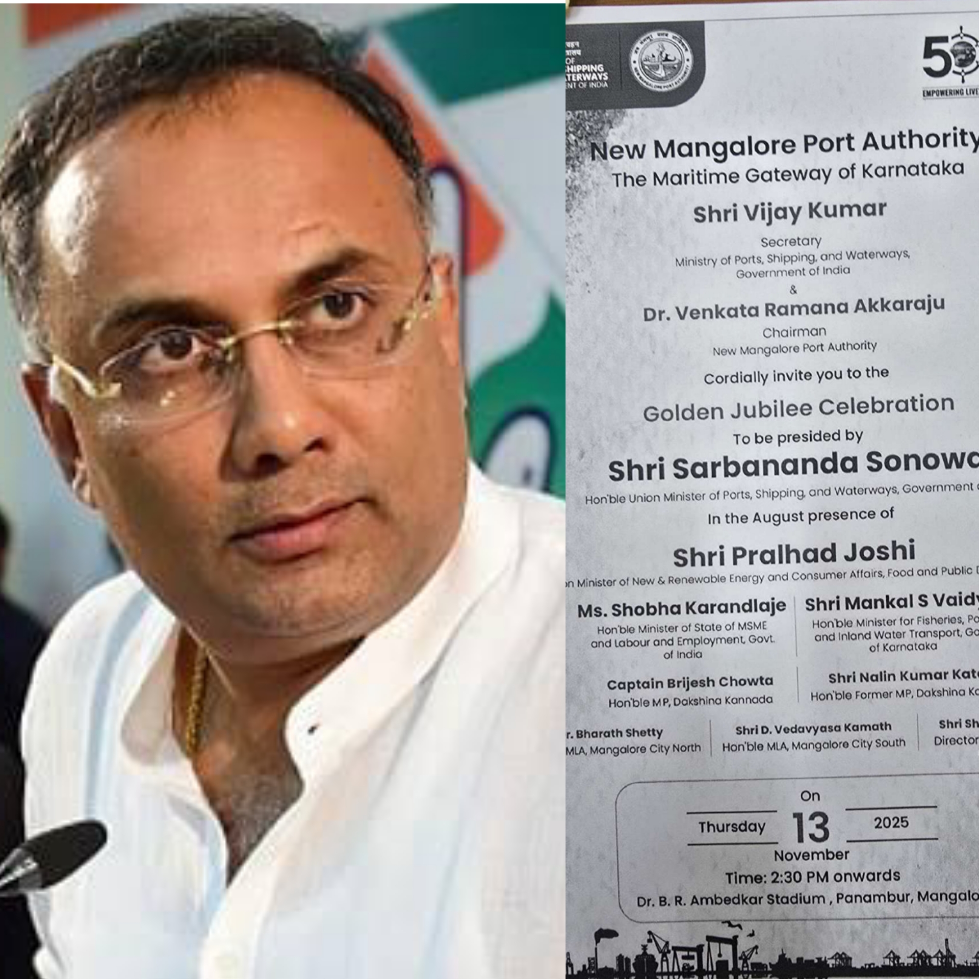 ಮಂಗಳೂರು: ದಕ್ಷಿಣ ಕನ್ನಡ ಜಿಲ್ಲೆಯಲ್ಲಿ ಮತ್ತೆ ರಾಜಕೀಯ ಶಿಷ್ಟಾಚಾರದ ವಿವಾದ ಉಂಟಾಗಿದೆ. ಮಂಗಳೂರಿನ ನವ ಮಂಗಳೂರು ಬಂದರು ಪ್ರಾಧಿಕಾರದ ಸುವರ್ಣ ಮಹೋತ್ಸವ ಕಾರ್ಯಕ್ರಮಕ್ಕೆ ಜಿಲ್ಲಾ ಉಸ್ತುವಾರಿ ಹಾಗೂ ಆರೋಗ್ಯ ಸಚಿವ ದಿನೇಶ್ ಗುಂಡೂರಾವ್ ಅವರಿಗೆ ಆಹ್ವಾನ ನೀಡದಿರುವುದಕ್ಕೆ ಆಕ್ರೋಶ ವ್ಯಕ್ತವಾಗಿದೆ.